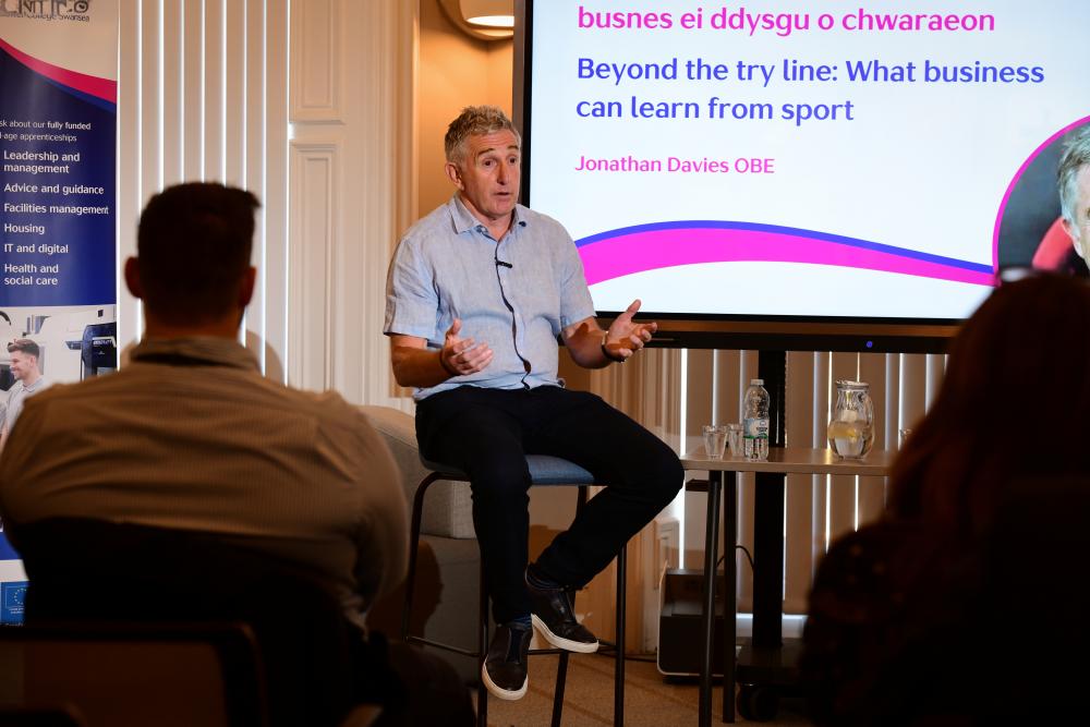 The event, which was hosted by the College’s Business Development Consultant and former Wales rugby international, Stuart Davies, brought together staff and leading figures from the local business community for a rare opportunity to gain first-hand insight from one of Wales’ most respected sporting figures.