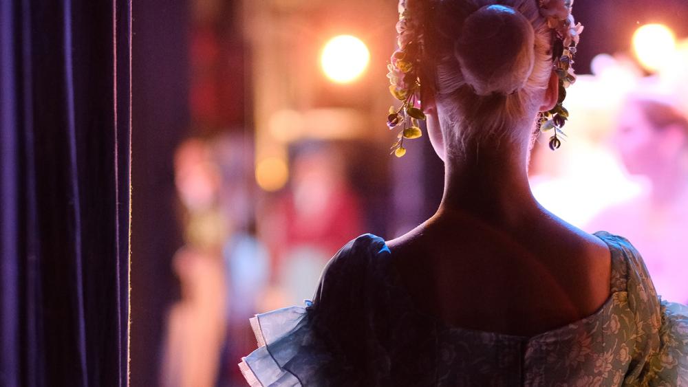 Woman arranging flowers