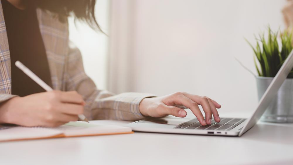 Close up of hand with pen about to write on blank paper