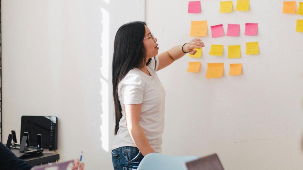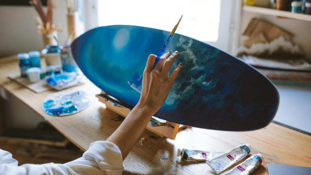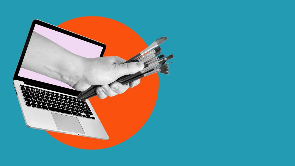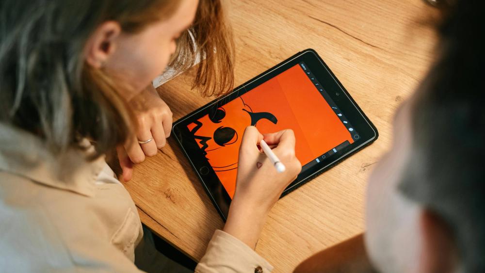 Someone drawing a person using an easel