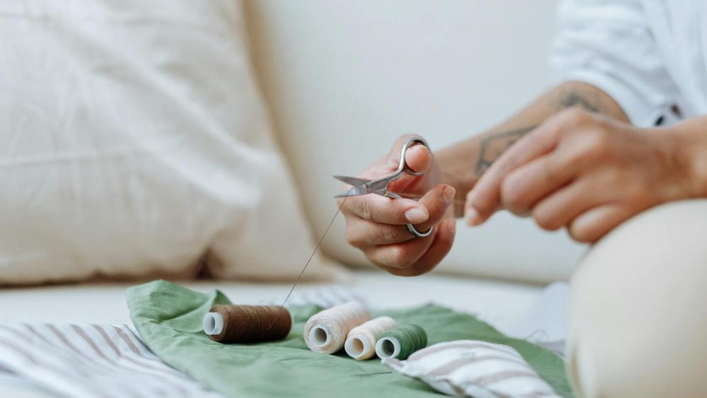 using applique techniques to sew a leaf onto fabric