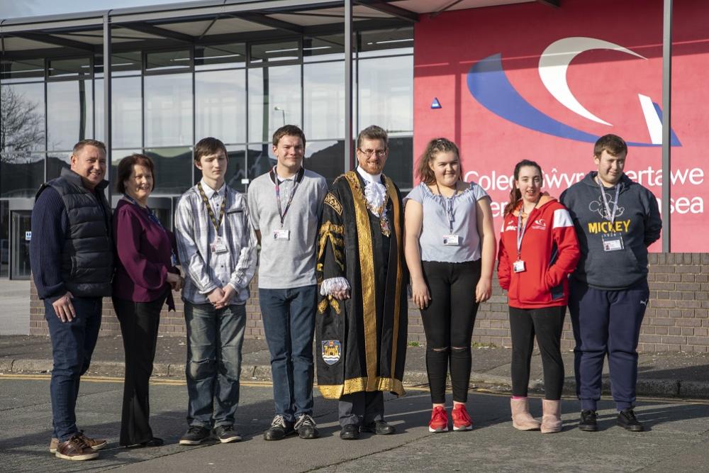 Yn ystod yr haf, roedd pump o ddysgwyr Sgiliau Byw’n Annibynnol yn dathlu ar ôl cwblhau rhaglen interniaeth â chymorth yn yr unig uned gyflenwi sydd gan Amazon yng Nghymru, wedi’i lleoli yn Abertawe.