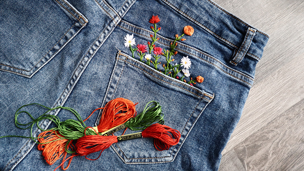 Dysgwch sut i greu pwythau brodwaith syml i orchuddio twll mewn hen bâr o jîns neu i roi gwedd newydd i hen grys neu ffrog.