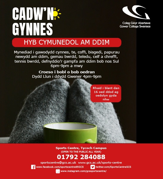 Yn ogystal, dros hanner tymor mis Chwefror, bydd sesiynau Te a Chlonc rhwng 7am a 9am ac yna sesiynau badminton, pêl-droed wrth gerdded, pêl-fasged a dodgeball yn y prynhawn (amserau isod*).