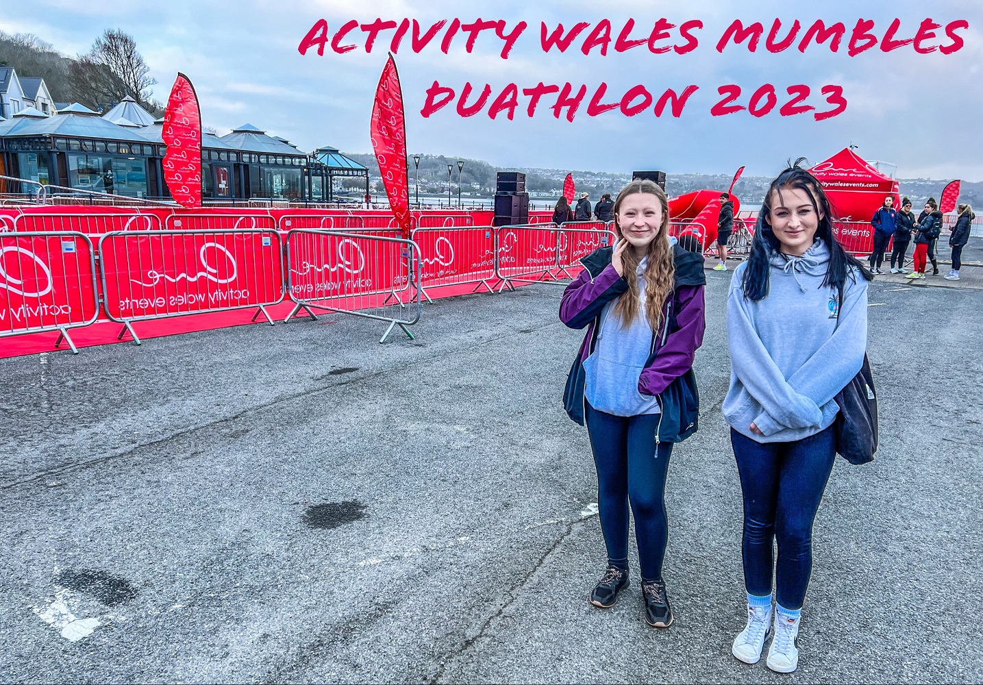 Ac yn olaf, roedd dau fyfyriwr, Megan Gear a Faith Lloyd, wedi gwirfoddoli yn Nuathlon y Mwmbwls y penwythnos diwethaf. Roedden nhw wedi mwynhau’r profiad o ddysgu am ochr weithredol rhedeg digwyddiad a chyfarch athletwyr ar ddiwedd y ras!