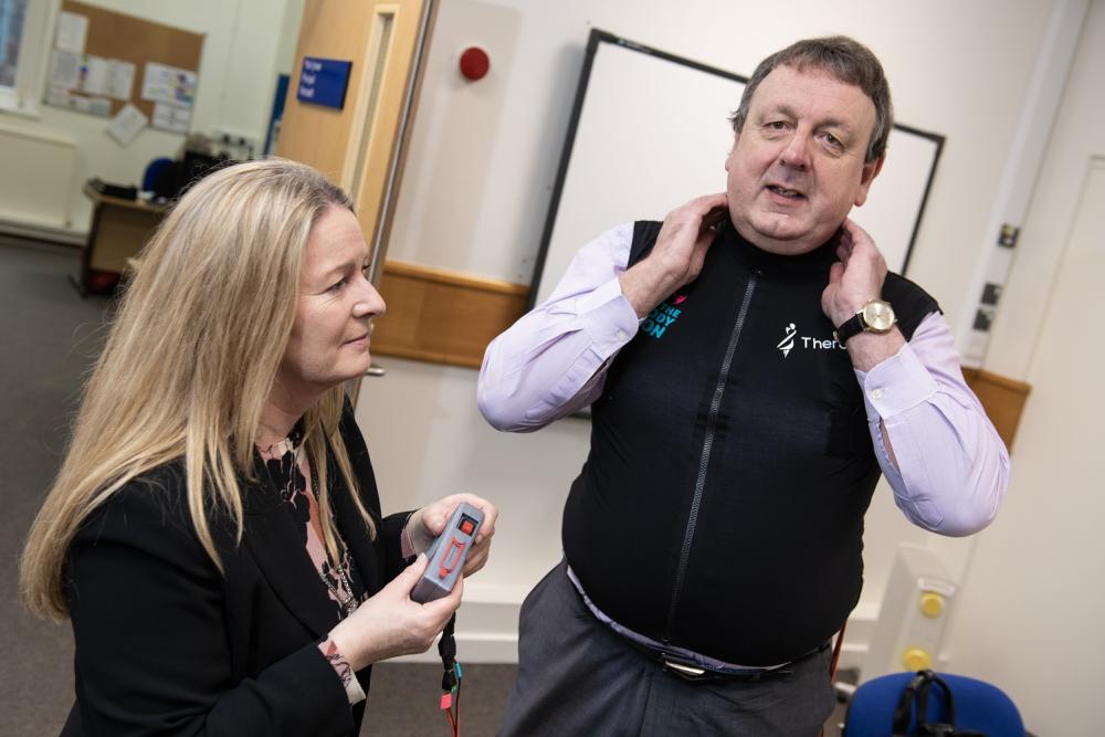 Anogwyd staff a myfyrwyr Coleg Gŵyr Abertawe i boethi ychydig o dan y coler pan gawsant gyfle i wisgo’r Menovest TM