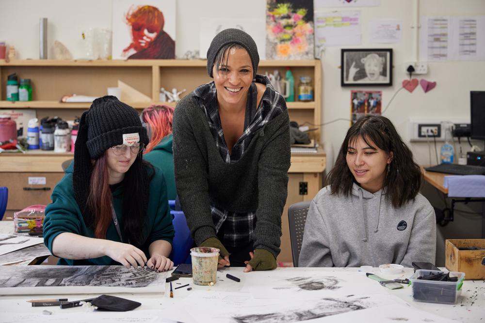 “Rydyn ni’n teimlo ei bod hi’n bwysig i’n myfyrwyr gwrdd â chyflogwyr ac artistiaid fel rhan o’u cwrs Coleg ac felly roedden ni’n falch dros ben o gael cynifer o bobl ysbrydoledig iawn yn ymuno â ni eto eleni,” meddai Rheolwr Maes Dysgu'r Celfyddydau Gweledol, Kieran Keogh. “Yr hyn oedd yn arbennig o gyffrous y tro ‘ma oedd croesawu Fran a Megan yn ôl, dwy gyn-fyfyrwraig Llwyn y Bryn, a siaradodd mor bositif am eu cyfnod yma ac sydd yn ysbrydoliaeth i’n dysgwyr presennol.”