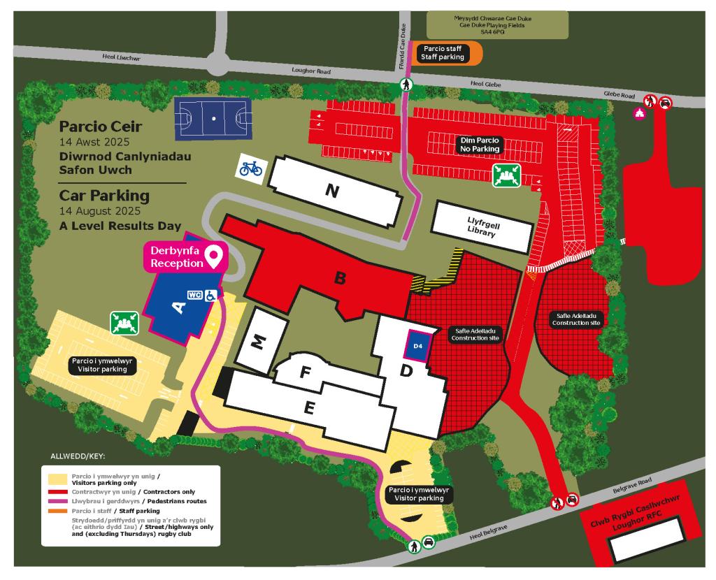 Sylwa: Os wyt ti’n casglu dy ganlyniadau o Gampws Gorseinon, cofia fod gwaith ailwampio yn cael ei gynnal yno, sy’n golygu y bydd angen i ti barcio ym maes parcio Bloc A/Bloc y Celfyddydau. Rydyn ni’n buddsoddi £20.6 miliwn yn y campws i wella cyfleusterau dysgu ac addysgu i bob myfyriwr. Ymddiheurwn am unrhyw anghyfleustra. Diolch am eich amynedd a’ch dealltwriaeth.