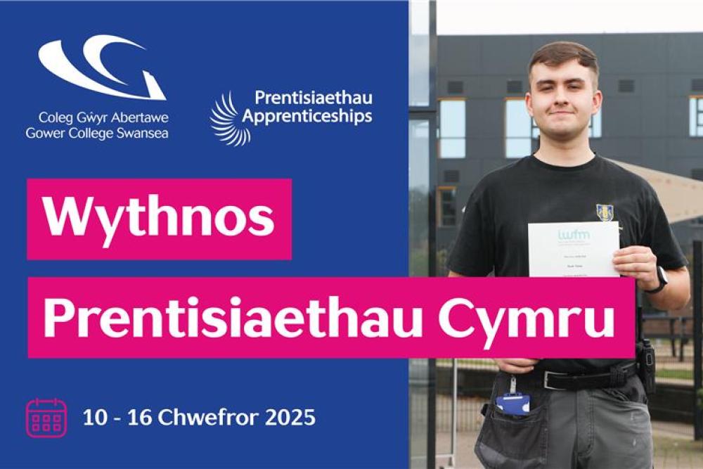 Yng Ngholeg Gŵyr Abertawe, byddwn ni’n cynnal amrywiaeth o weithgareddau cyn yr wythnos ac yn ystod yr wythnos i ddathlu ac egluro prentisiaethau: