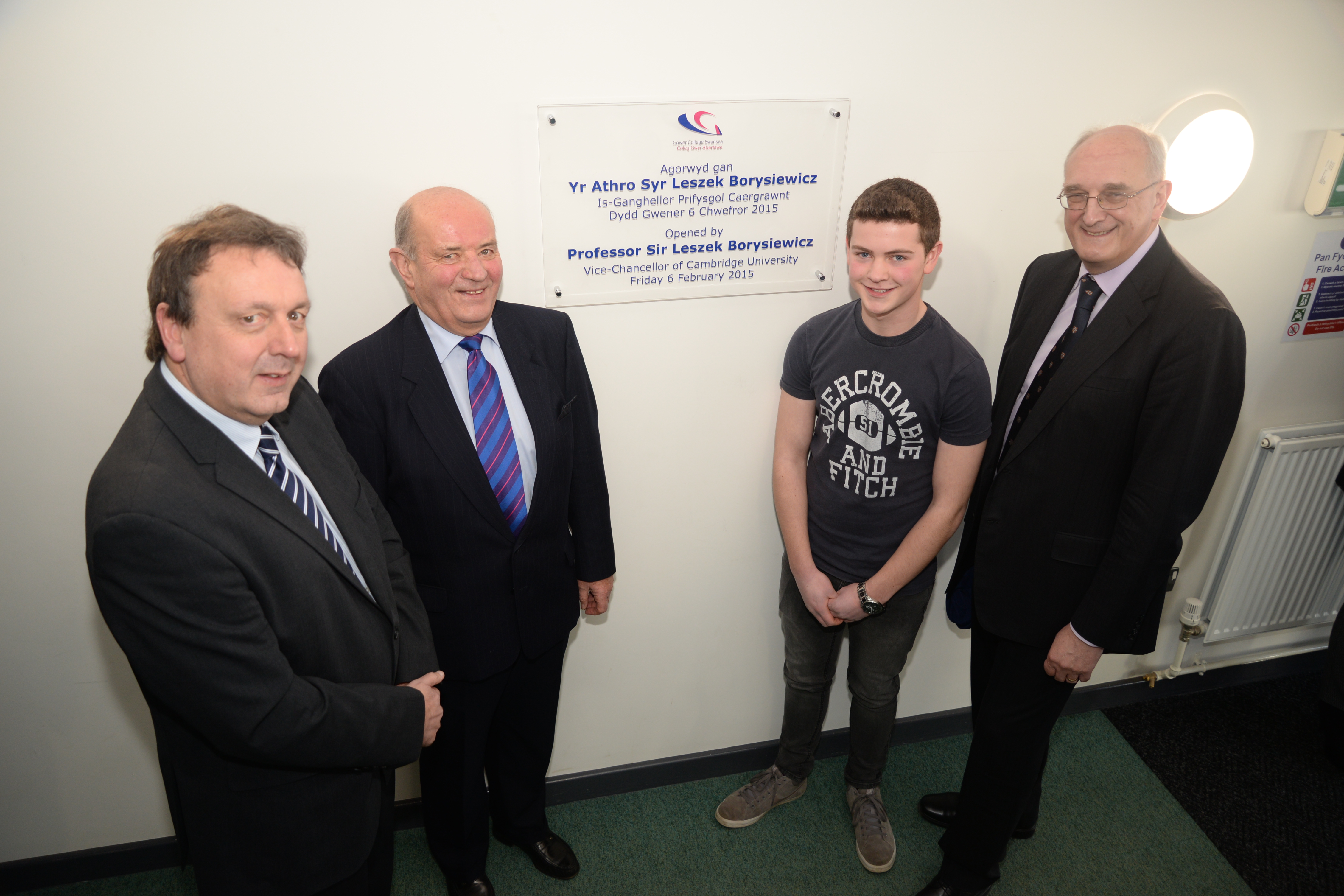 “Mae hyn yn anrhydedd gwych. Pleser o’r mwyaf oedd croesawu’r Athro Syr Leszek Borysiewicz i’r agoriad swyddogol,” ychwanegodd Mark. “Mae gan Goleg Gŵyr Abertawe gysylltiadau agos iawn â Phrifysgol Caergrawnt gan mai ni yw’r ‘prif’ sefydliad o fewn Consortiwm AU+ Abertawe – cydweithrediad rhwng y coleg, y saith ysgol chweched dosbarth leol a Phrifysgol Caergrawnt, sy’n annog myfyrwyr i anelu mor uchel ag sy’n bosibl wrth wneud dewisiadau prifysgol.”