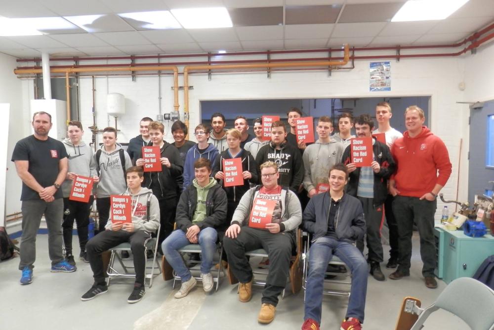 In conjunction with the college’s wider Diversity Week, a series of workshops and fundraising events were held to raise awareness of Show Racism the Red Card. This took the form of workshops with plumbing, electrical and sport students, a spot of sponsored leg waxing at Tycoch and a table tennis tournament between ESOL students and staff at Llwyn y Bryn. Over £85 has been raised so far for this initiative.