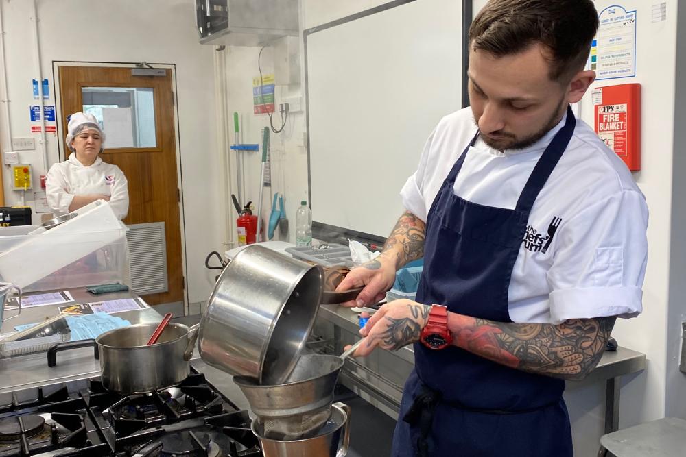 Nick, who started his journey at the College studying Level 1 Diploma in Introduction to Professional Cookery and finished at Level 3 Diploma in Advanced Professional Cookery (Kitchen and Larder), did a cooking demonstration with students through The Chefs’ Forum Academy.