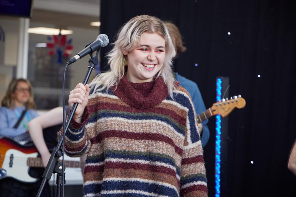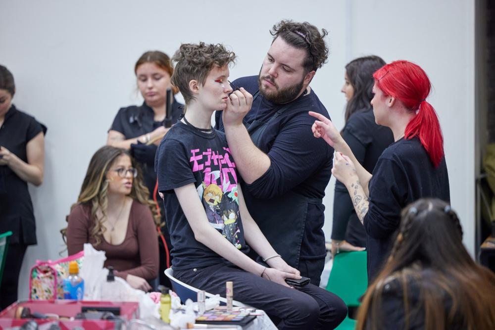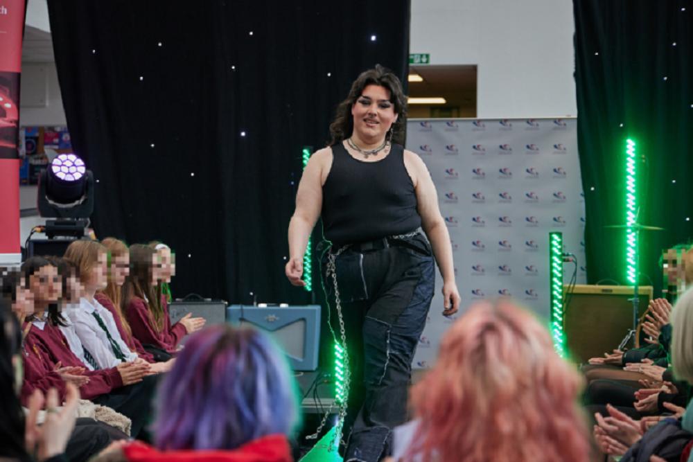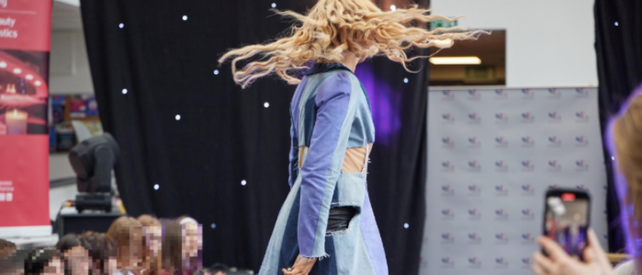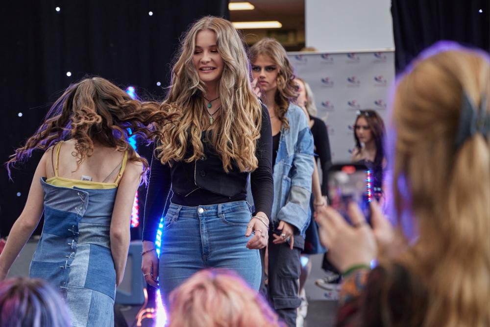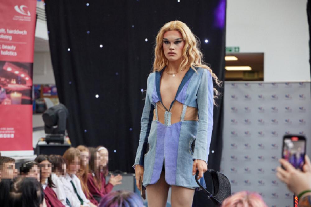Production Arts students set the stage and controlled the sound and lighting, while Hair and Makeup students prepared the models for the catwalk. Music Performance students impressed the audience with a showcase of original material and Art and Design students displayed their sustainable fashion garments created from waste denim, as well as exhibiting some of their final art pieces and winning Skills Competition Wales entries.