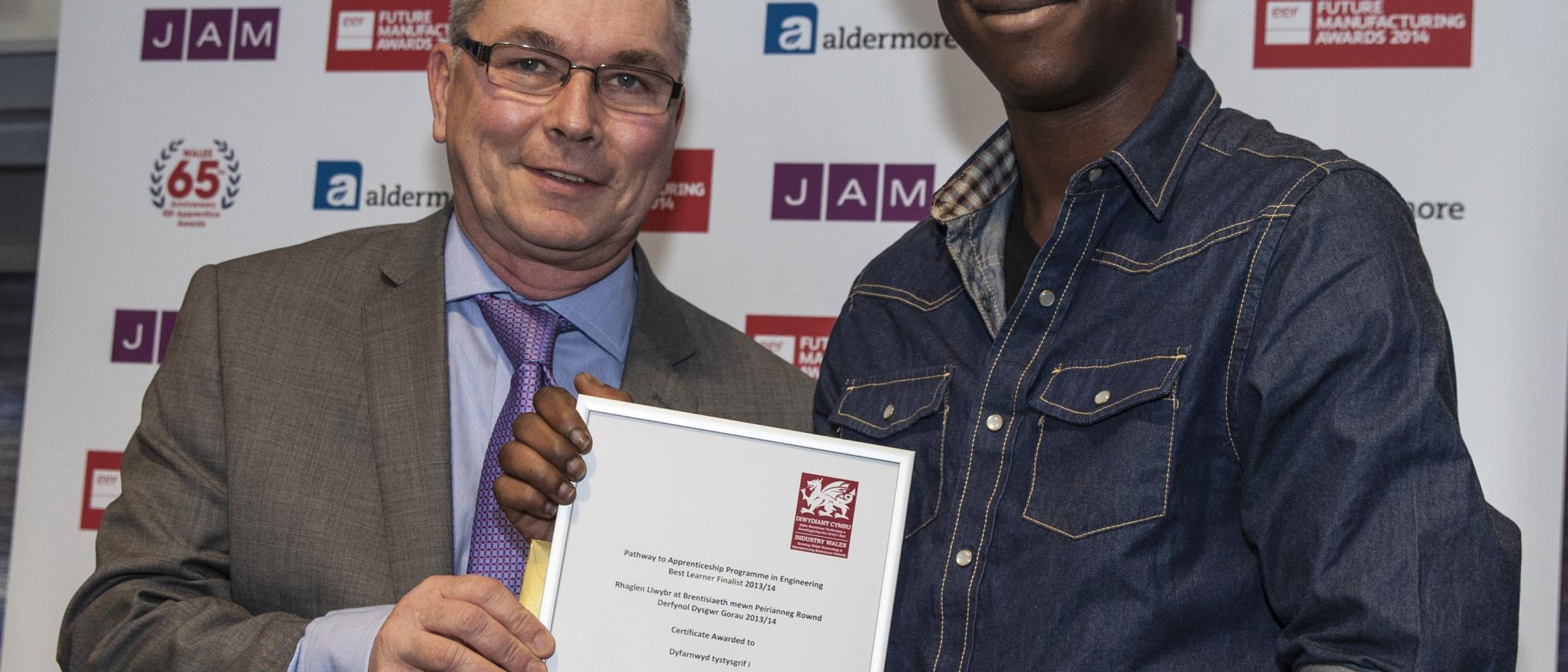 Gower College Swansea Engineering student Amadou Khan recently picked up an award at the prestigious EEF Future Manufacturing Awards at Cardiff City Stadium