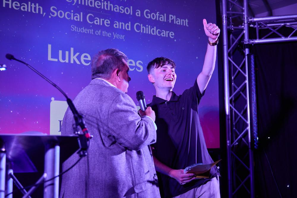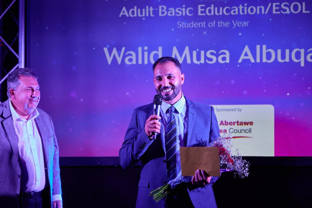 Firm favourite Kev Johns MBE returned to the stage at Swansea.com Stadium to host the evening, where learners from a range of full and part time courses, apprenticeships, higher education pathways, access courses and employability support programmes picked up awards.
