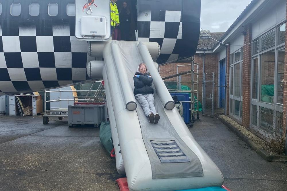 Students from the Level 3, year 1 course travelled to Bournemouth Airport to take part in Cabin Crew training at JARE Training Academy. They carried out practical activities including the emergency evacuation slide, safety demo and smoke filled cabin search and evacuation. This was an excellent day of training where students had a great insight into the career of a flight attendant.