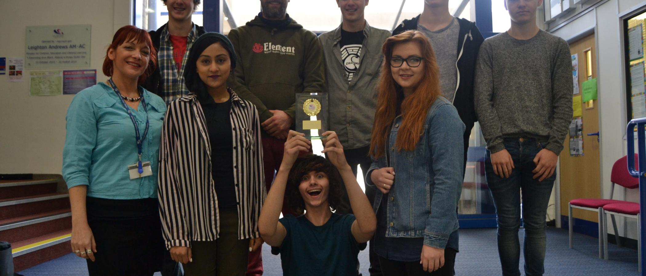Vocational Creative Media students Kieran Palfrey, Talisha Weston, Oliver Draper and A Level students Brad David, Rhys Cozens, Shazia Ali and Josh David-Reed were the winning team from the Gorseinon campus.