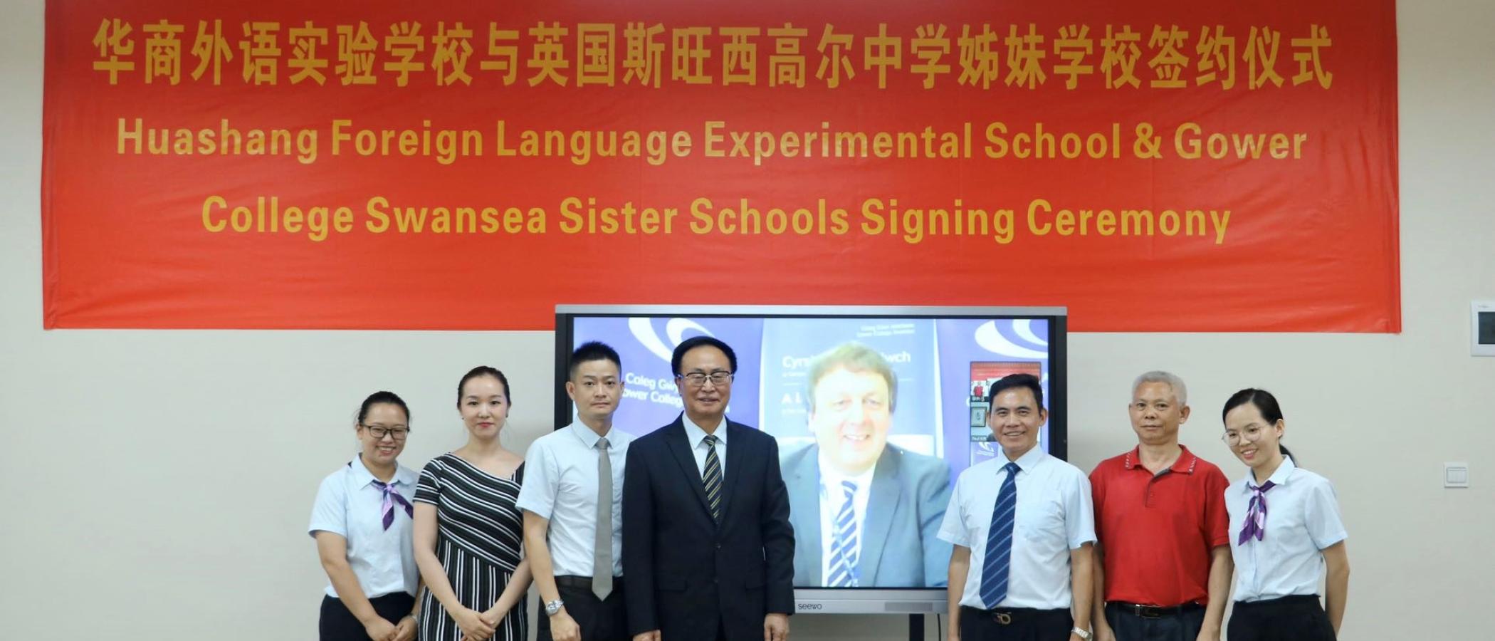 A very unique and special signing ceremony was held on Wednesday 1 July between Gower College Swansea and Huashang Foreign Language Experimental School, Guangdong Province, China.