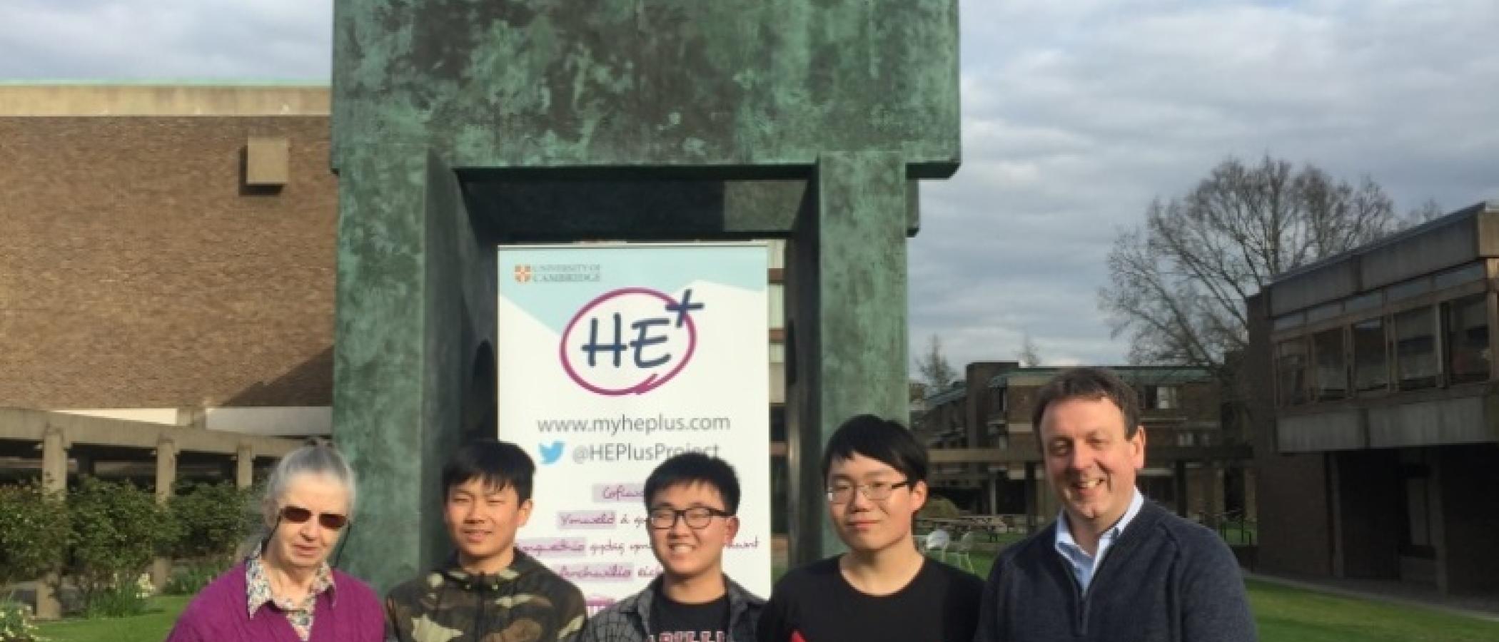 Pictured: International students from China and South Korea at Churchill College with Felicity Padley, Oxbridge Tutor and HE+ Co-ordinator, and Mark Jones, Principal.