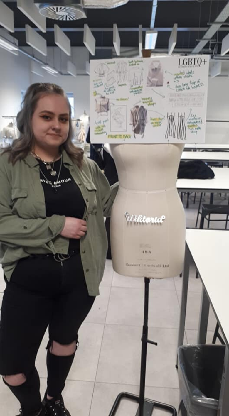 Both Leah and Wiktoria’s competitions were live realisations of their design work submitted in a passive round where they were selected as one of six finalists; Leah creating a window display and Wiktoria making a shirt, both with the theme of fashion and sustainability. They were judged by both University of Wales staff and industry professionals.