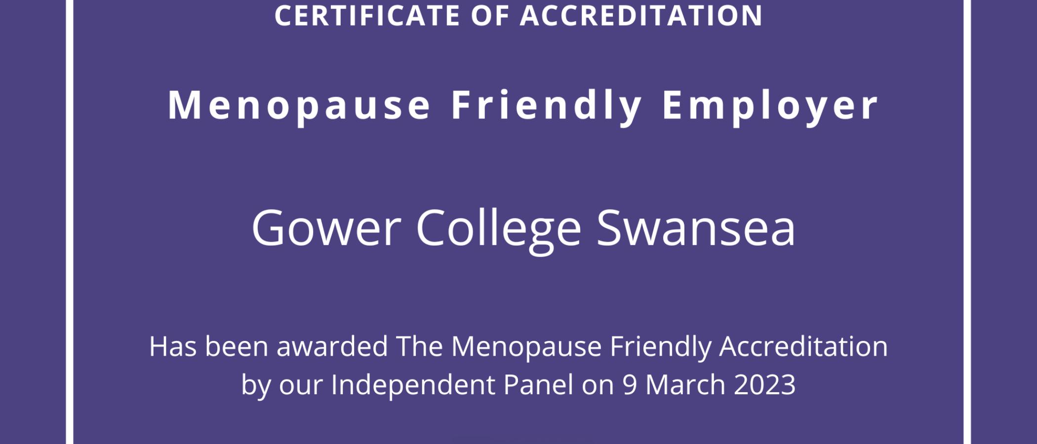 Gower College Swansea has been awarded Menopause Friendly Accreditation status.