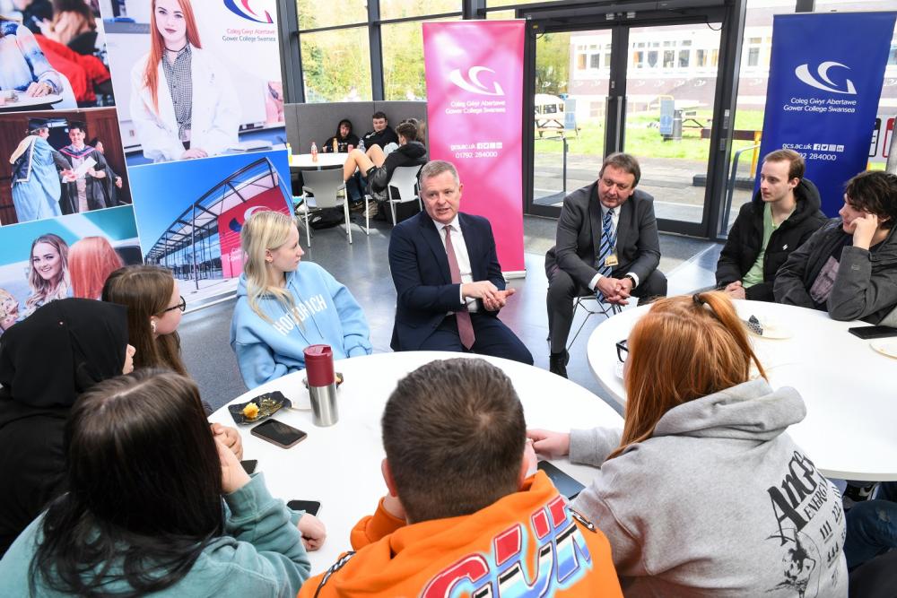 Gower College Swansea was delighted to welcome the Minister for Education and Welsh Language, Jeremy Miles, to the Tycoch Campus on 17 April.