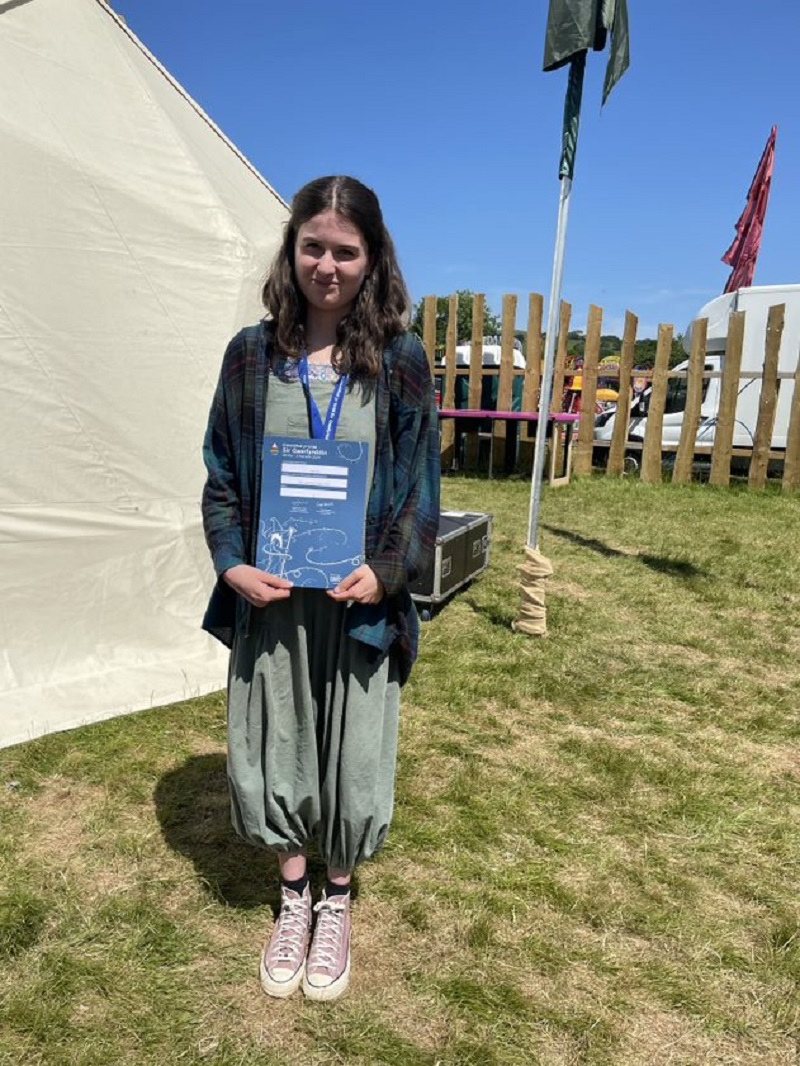 In addition to this, a special award went to two students; the Art, Design and Technology Medal to Lara Rees for the best piece of work in the under 19 category from all art, design and technology competitions at the eisteddfod. The scholarship for the most promising soloist went to Katherine Foxall. Lara and Katherine received their medals in a special ceremony in the pavilion on the Eisteddfod Maes.