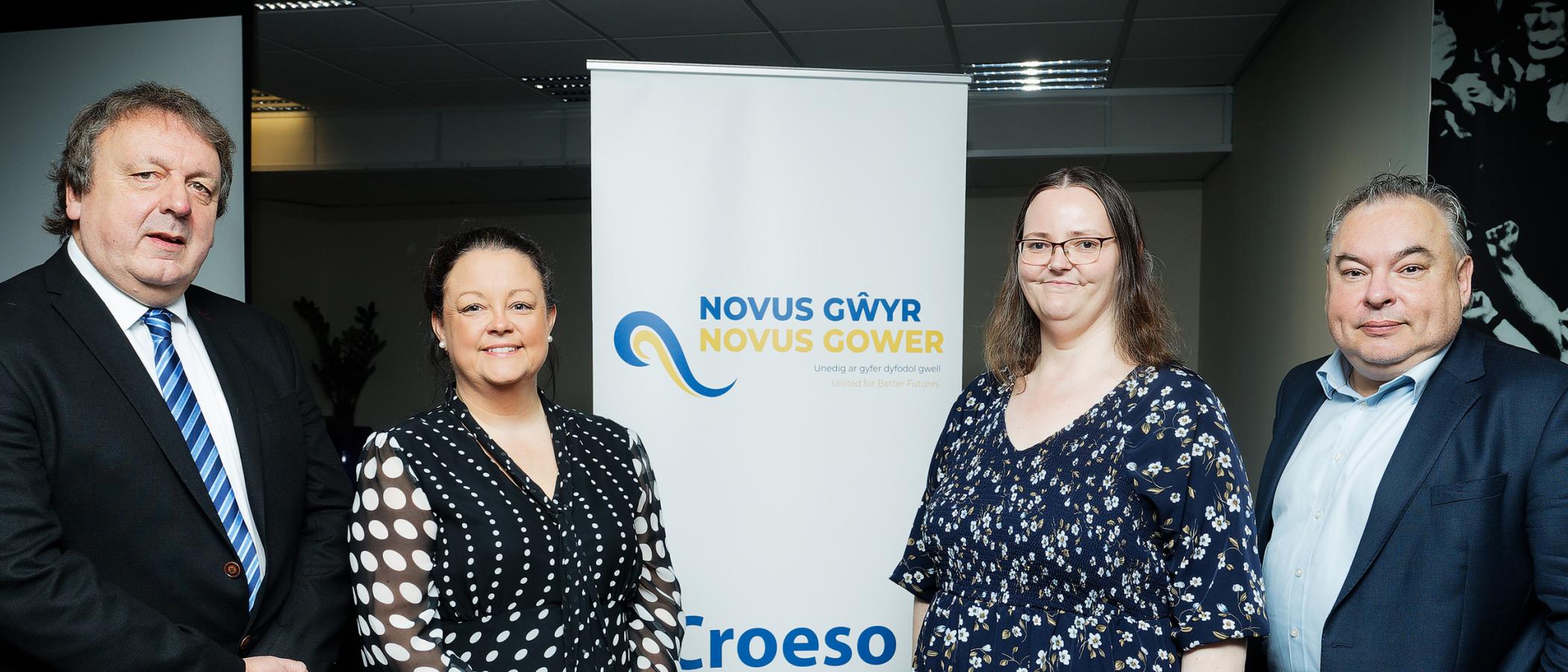 Left to right: Mark Jones, CEO Gower College Swansea, Louisa Walters, Quality Development Manager Gower College Swansea, Sally Pearson, Head of Learning and Skills Novus Gower and Peter Cox, Managing Director Novus