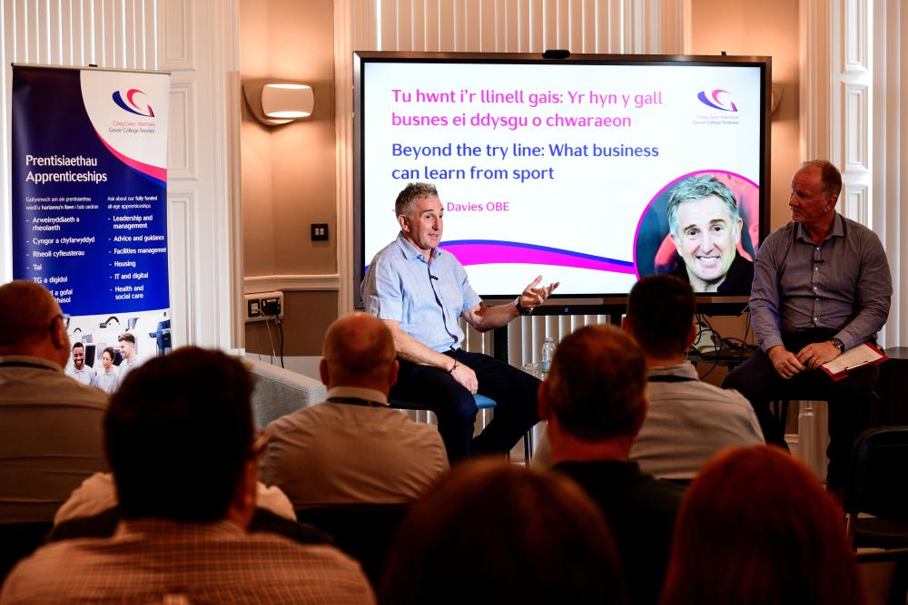Gower College Swansea was delighted to welcome former international rugby player and broadcaster Jonathan Davies OBE, to Sketty Hall Business School as part of its management masterclass series.