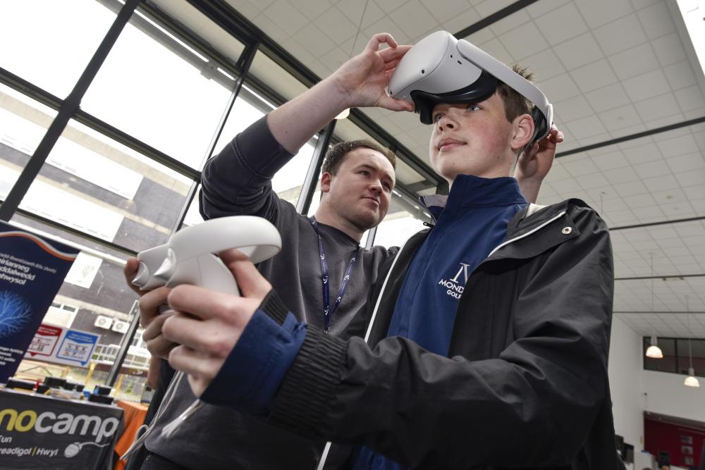 College staff hosted an exhibition where learners had a chance to get hands on with a variety of activities including 360-degree cameras, VR/AR kit, and the latest in Esports simulators. The College was also grateful to Swansea University's Technocamps for their engagement around robotics. The event also featured Academii who demonstrated their latest virtual reality software to help simulate solutions to real world business problems.