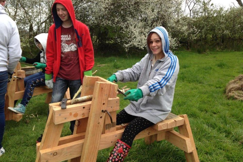 Students on the STTEP programme are taking part in green woodwork sessions and experiencing skills such as splitting oak, small animal care, fire lighting and beekeeping.