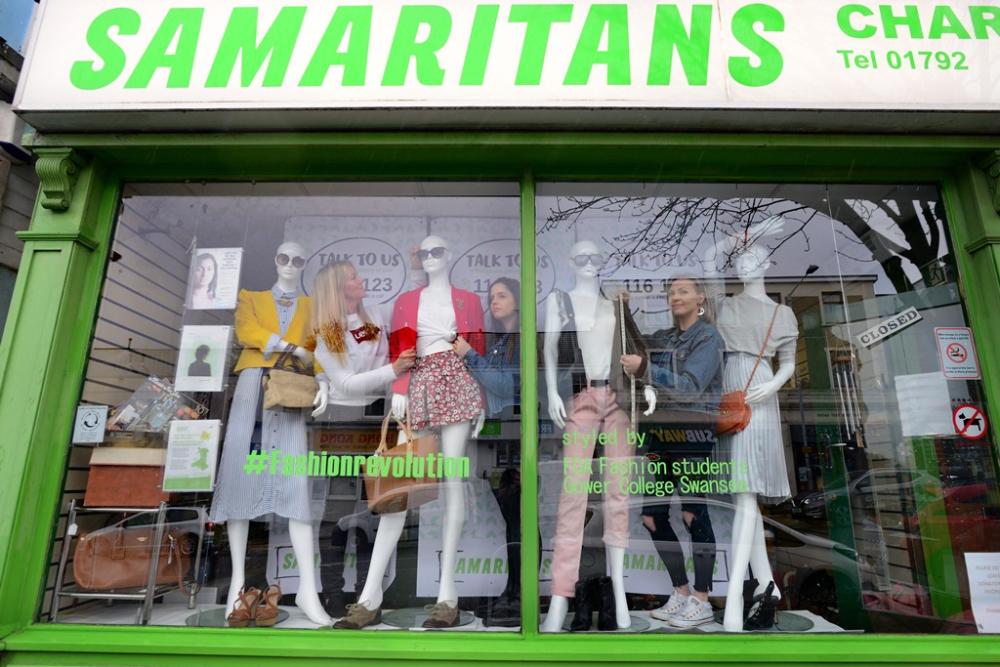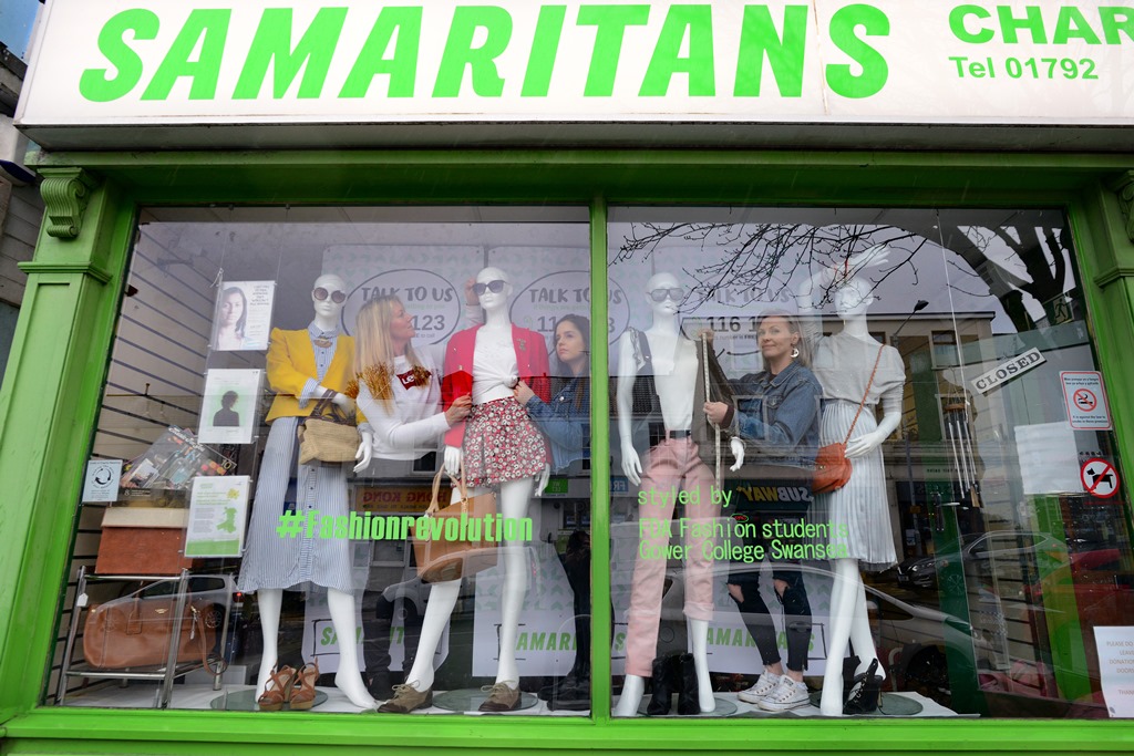 Students from Gower College Swansea’s Llwyn y Bryn Campus have taken over the window of a local charity shop to help raise awareness of ethical fashion.