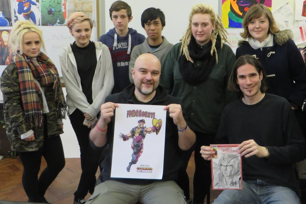 Professional illustrators and former Llwyn y Bryn students Simon Williams and Jason Cardy dropped in recently to have a chat with the current Levels 1 and 2 Art and Design cohort.