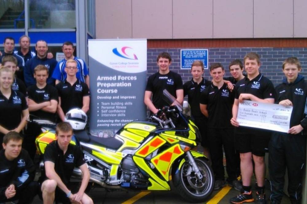Students on the Armed Forces Preparation course at Gower College Swansea have organised a sponsored cycle with a difference. Pupils from Pen-y-Bryn Special School completed a virtual ride around the coast of Gower, without leaving the Sports Centre on the Tycoch campus!