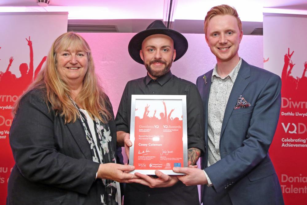 Casey Coleman, a former Gower College Swansea student, was one of six finalists in the running to become VQ Learner of the Year at the showpiece awards ceremony at St David’s Hotel, Cardiff. The award recognises learners who clearly demonstrate progression and excellence in vocational studies and have made considerable achievements in their field.