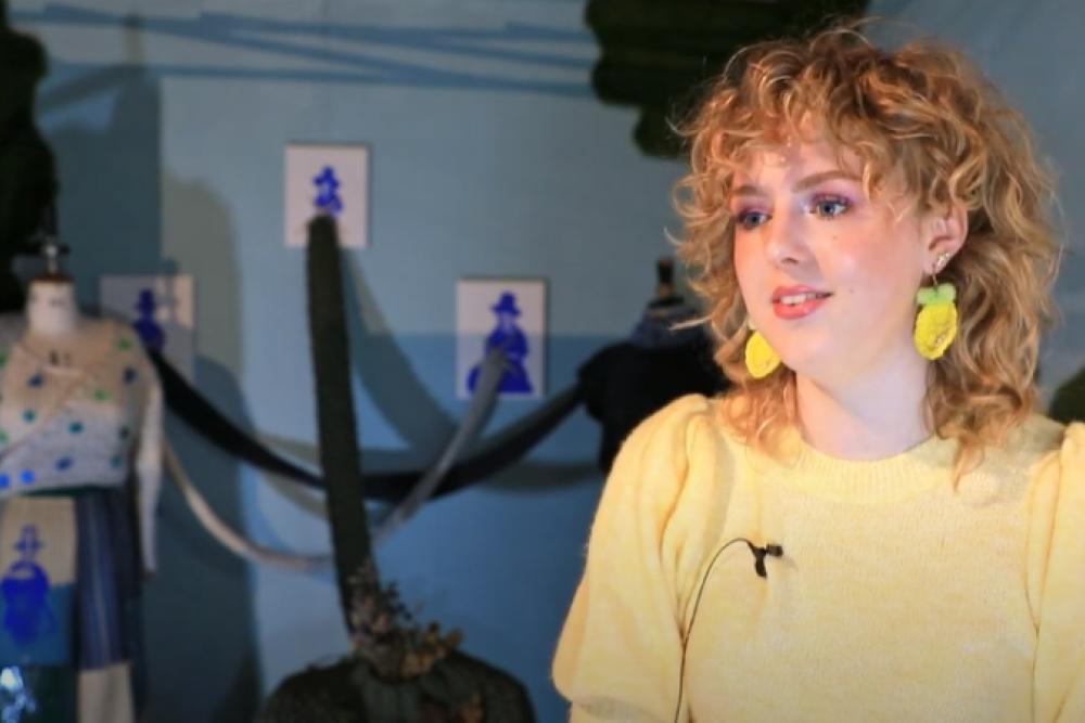 Welcome to our Foundation Art and Design exhibition, based on the theme “2031”. Please have a look around the virtual show below by clicking the circles on the floor to move around, clicking and dragging to look in each direction, and clicking the pink circles to watch videos of our students talking about their work!